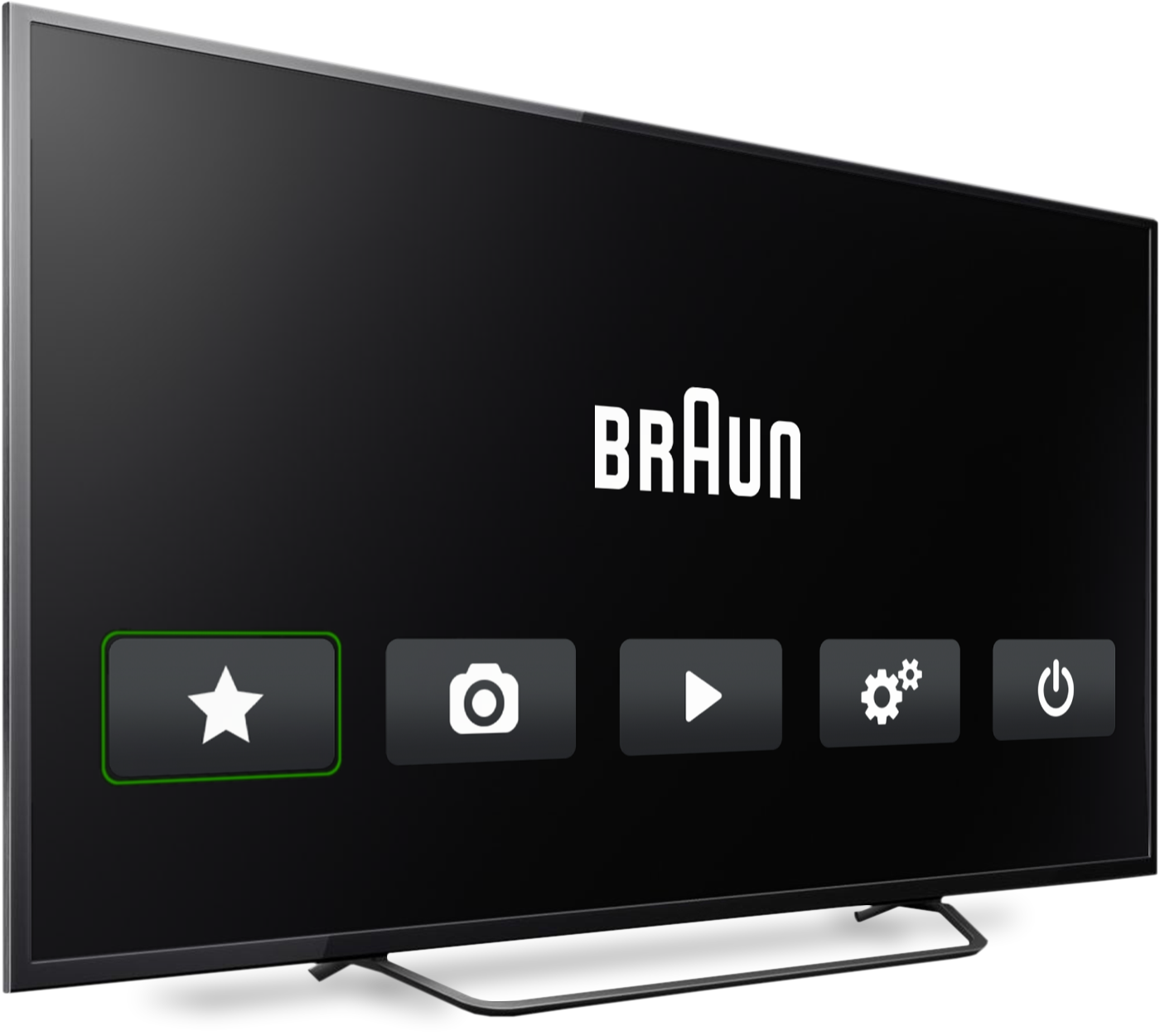 Mit dem Braun-Skin für die Media Center Software Kodi macht der M 301 auch auf dem Fernsehgerät eine gute Figur. Dank der Modifikation des Add-ons AppTV fügt sich die grafische Benutzeroberfläche durch Farbanpassung und Reduzierung wunderbar in das Gesamtbild der Braun HiFi Komponenten ein.